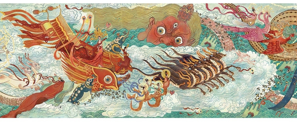 葉露盈:我是按照人物的氣場來安排神獸和動物的,看帖的人我就給他旁邊安排只鳳凰,女人旁邊按我的想法安排蛟龍,王羲之的三個兒子:王煥之、王獻之、王徽之,身邊就有機敏聰慧的兔子,自己帶酒來喝得東倒西歪的人(或者是作不出詩罰酒三斗的人),我可能讓他旁邊環(huán)繞一群魚,有點像夢魘一樣的感覺……都出于創(chuàng)作時一瞬間的感覺。