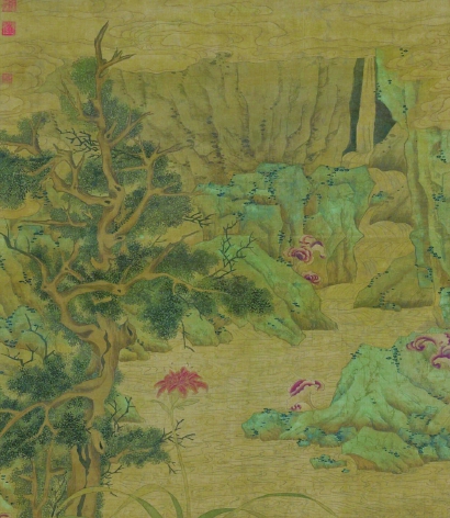 《五瑞圖》是標(biāo)準(zhǔn)的文徵明風(fēng)格,是一種青綠山水?!拔迦稹敝傅木烤故鞘裁??中國(guó)歷史上存在著多種說(shuō)法。在文徵明的這幅畫(huà)里,專(zhuān)家傾向于認(rèn)為“五瑞”指的是古柏、萱草、靈芝、祥云、奇石。總而言之,“五瑞”其實(shí)都代表著中國(guó)人對(duì)國(guó)泰民安、幸福祥瑞的祈求和希望。這在經(jīng)歷了疫情的當(dāng)下,顯得意味深長(zhǎng)。