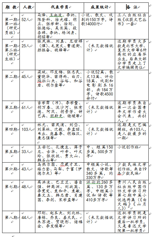 從1950 年10 月到1957 年11 月,中央文學(xué)研究所共開辦七年,先后開設(shè)四期五班,培養(yǎng)了286 名學(xué)員。加上1980 年文學(xué)講習(xí)所恢復(fù)后又開辦的四期,一共培養(yǎng)學(xué)員454 名。