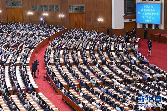 5月27日,中國人民政治協(xié)商會議第十三屆全國委員會第三次會議在北京人民大會堂舉行閉幕會。 新華社記者 張領(lǐng) 攝
