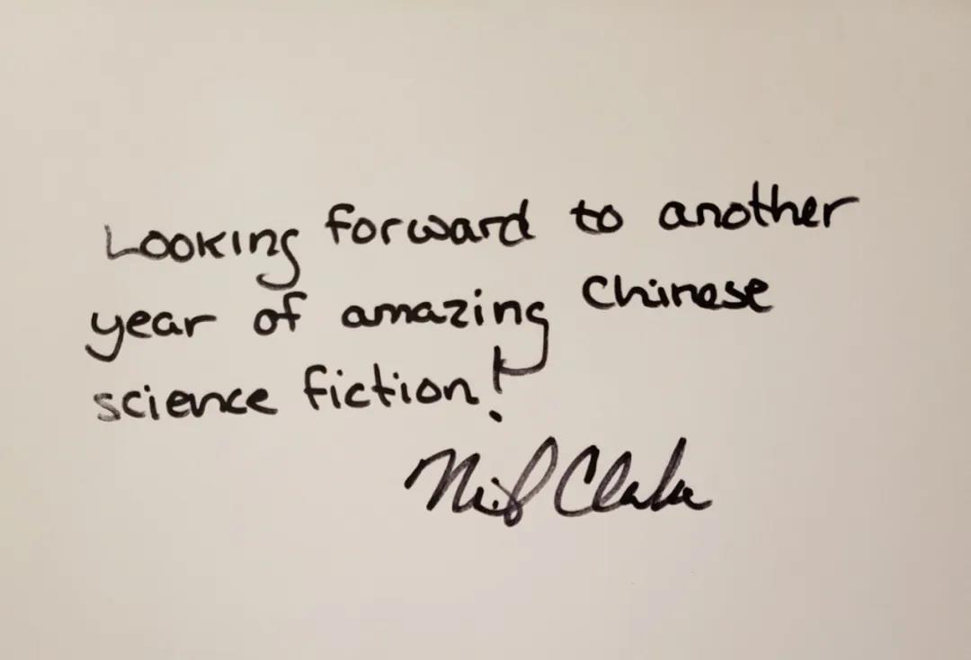 克拉克:是的,雖然項目計劃是一定要發(fā)表來自中國的科幻故事,我還是會以同樣的標(biāo)準(zhǔn)對待這些小說摘要和那些通過常規(guī)投稿方式提交的小說。我不會去尋找特定的東西,如賽博朋克故事,我的標(biāo)準(zhǔn)具有開放性,有點像移動標(biāo)靶。對我來說好小說的最高標(biāo)準(zhǔn)是能夠讓我為之驚訝。我經(jīng)常跟人說我喜歡能夠引發(fā)我思考和觸動感情的小說。我讀了很多小說,好的小說所具備的一個特征就是能夠讓我在第二天仍然還想著它。我基本就是用這種方式從小說摘要中進行篩選的,當(dāng)然,我也會從閱讀過這些小說的譯者和朋友那里征集一些其他的想法或反饋,在這方面,我的同事和朋友幫了我很大的忙。