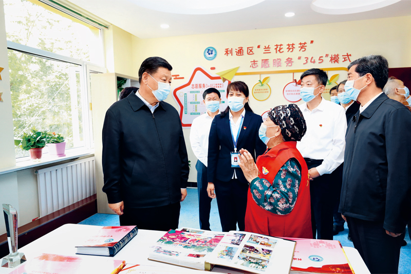 2020年6月8日至10日,中共中央總書(shū)記、國(guó)家主席、中央軍委主席習(xí)近平在寧夏考察。這是6月8日下午,習(xí)近平在吳忠市利通區(qū)金花園社區(qū)黨群活動(dòng)服務(wù)中心,同社區(qū)志愿者代表親切交談。 新華社記者 鞠鵬/攝