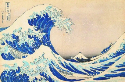 葛飾北齋《富岳三十六景》系列作品之《神奈川沖浪里》,其非凡的線(xiàn)描和構(gòu)圖使之成為日本浮世繪的標(biāo)志。