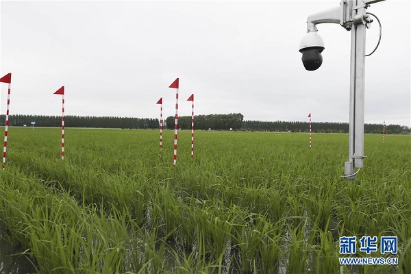 北大荒建三江國家農(nóng)業(yè)科技園區(qū)里的監(jiān)測設(shè)備(6月15日攝)。新華社發(fā)(張濤 攝)