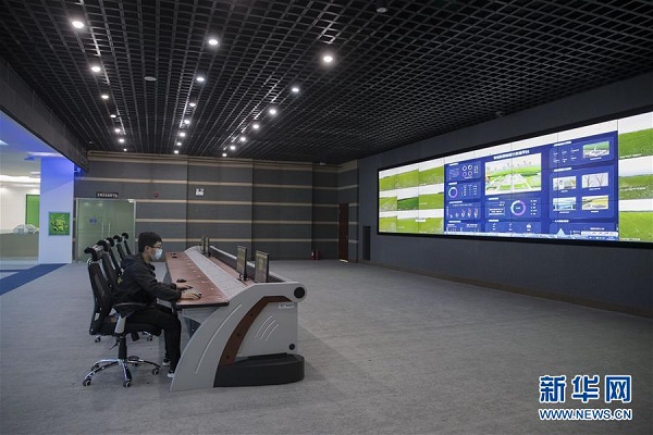 工作人員在北大荒精準(zhǔn)農(nóng)業(yè)農(nóng)機(jī)中心的農(nóng)業(yè)物聯(lián)網(wǎng)綜合服務(wù)信息化平臺上進(jìn)行操作(6月15日攝)。新華社發(fā)(張濤 攝)