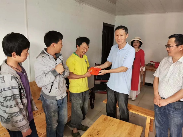 “苗家山寨、扶貧情深”,在重慶市人民檢察院籌資幫扶的便民服務(wù)中心里,王明凱、劉建春為大山里的孩子們送上了《春風,拽著人們奔跑》等作家們自己寫的書,并勉勵他們“好好學習、天天向上,努力成為國家的棟梁!”。在脫貧戶何祖華家中,劉建春代表大家送上慰問金,南風愛心助學會會長糜建國當即表示關(guān)注關(guān)心他的三個孩子。