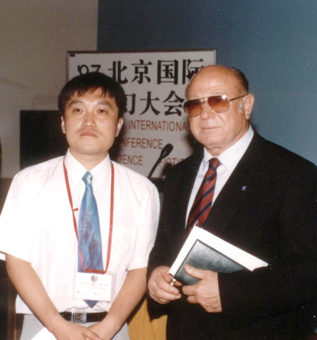 1997年吳巖與第一次太空行走的航天員列昂諾夫一起主持科幻會(huì)議