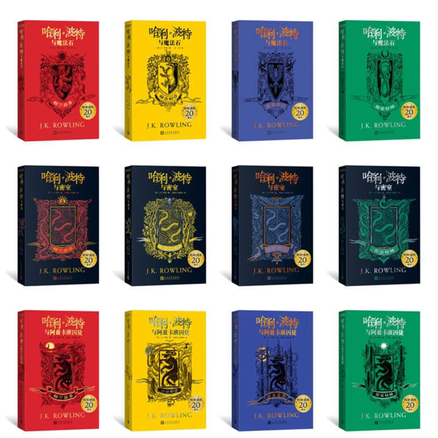 在“哈利?波特”系列圖書引進中國20周年之際,由人民文學出版社出版的“哈利?波特”學院紀念版上市。學院紀念版基于讀者熱愛的學院概念來慶祝這部20年來魅力不減的作品。該版本將同樣的故事推出格蘭芬多、斯萊特林、赫奇帕奇和拉文克勞四個學院版本。四個版本共同擁有最新修訂的譯文,完整收錄了小說內(nèi)容。而與此前故事的不同之處在于:每本書都根據(jù)自己的學院增加了大量相應的全新內(nèi)容,如學院創(chuàng)始人、著名學生、知名校友、院長、學院幽靈的簡介等等。此外,裝幀是此版本區(qū)別于其他版本“哈利?波特”的另一亮點,這本書完整復制了英國學院版的工藝,不僅全部使用觸感膜封面加以燙金、UV、起鼓等工藝,每個學院的書口更是刷上了標志性的學院配色。
