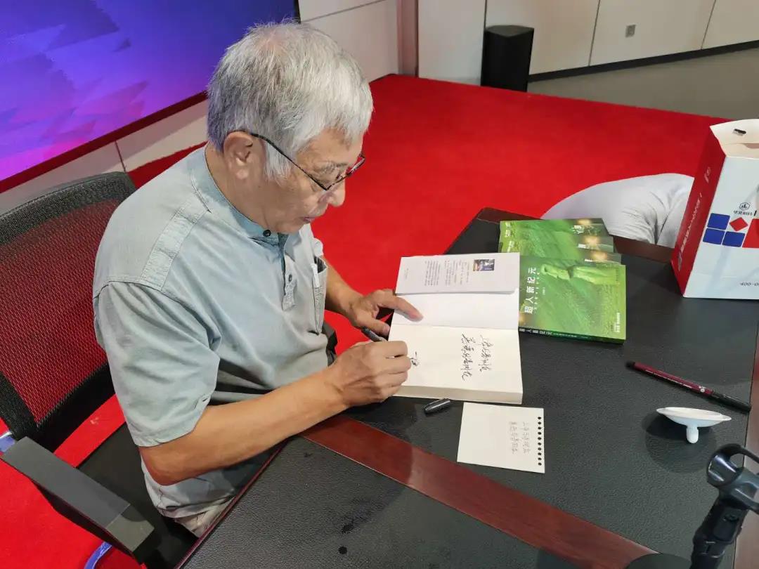 直播結(jié)束后,王晉康與專程趕來(lái)直播現(xiàn)場(chǎng)的書(shū)友互動(dòng)并為其簽名