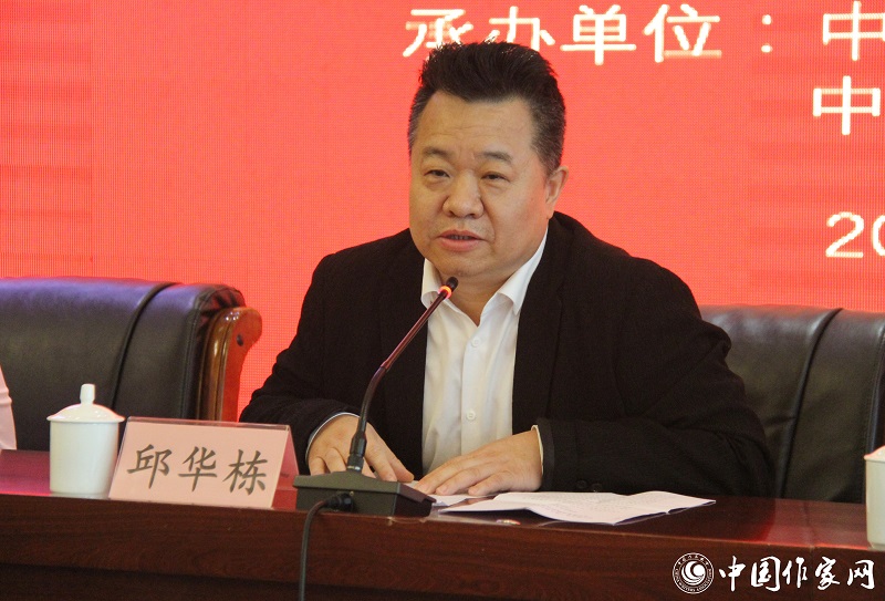 開班儀式上,還舉行了授旗儀式,邱華棟向作家代表孫云曉、魯若迪基授旗。