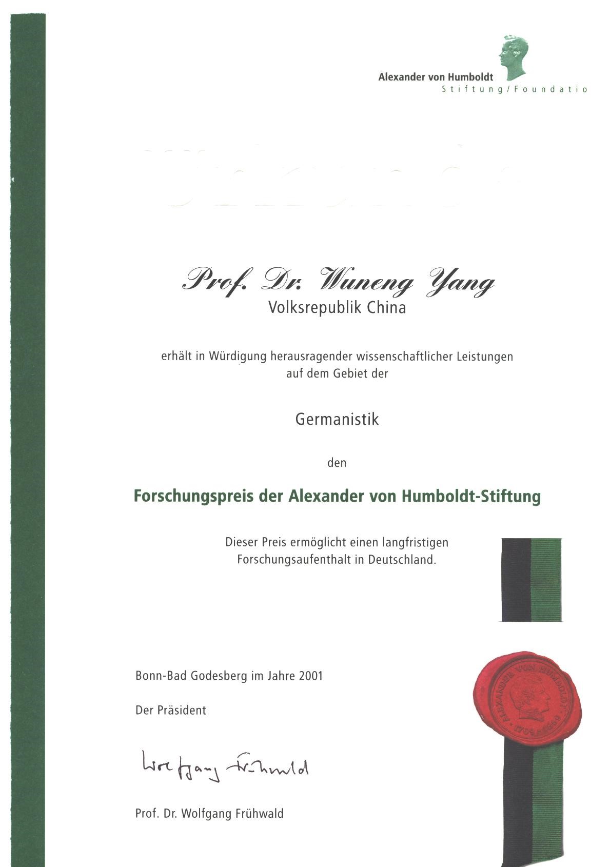 德國終身成就獎(jiǎng)性質(zhì)的洪堡學(xué)術(shù)獎(jiǎng)金