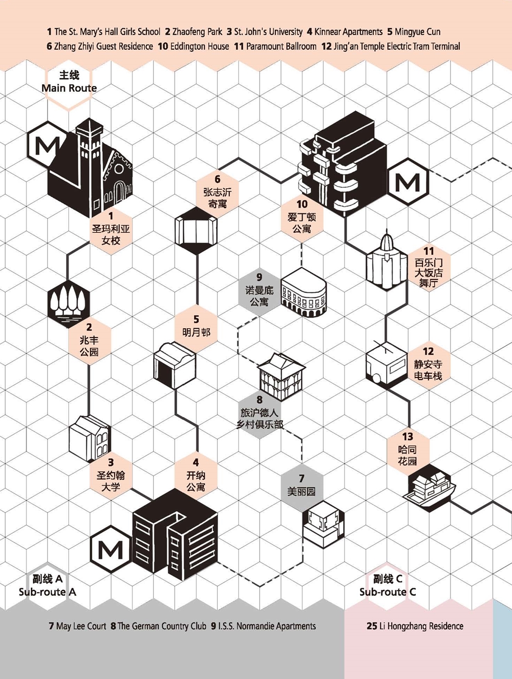 圣瑪利亞女校、開納公寓、愛丁頓公寓、重華公寓、卡爾登公寓……生活在上海的三十余年里,張愛玲的足跡遍布街巷角落,留下無數(shù)城市傳奇。兩年的時間里,師生用腳步丈量了張愛玲所有曾經(jīng)居住過的地方,將張愛玲在城市中的蹤跡串聯(lián)成一根完整的脈絡,讀者跟隨這條脈絡走訪,就仿佛進行了一次追尋張愛玲的旅行。
