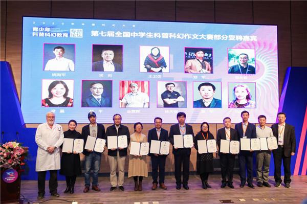 論壇還為第七屆全國中學(xué)生科普科幻作文大賽的部分受聘專家頒發(fā)了獎項;為2020年全國青少年科學(xué)創(chuàng)作活動中表現(xiàn)出色的學(xué)生頒發(fā)了榮譽證書;著名科幻作家、中國科普作家協(xié)會科幻研究基地主任王晉康和江蘇省科學(xué)技術(shù)協(xié)會副秘書長夏軍,共同為北京師范大學(xué)第二附屬中學(xué)國際部、北大附中深圳南山分校、哈爾濱繼紅小學(xué)等10家教育基地頒發(fā)“科普科幻創(chuàng)作人才培養(yǎng)基地”牌匾。