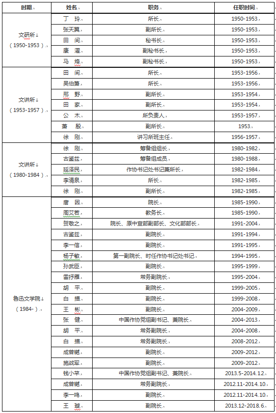 魯迅文學(xué)院歷任領(lǐng)導(dǎo)