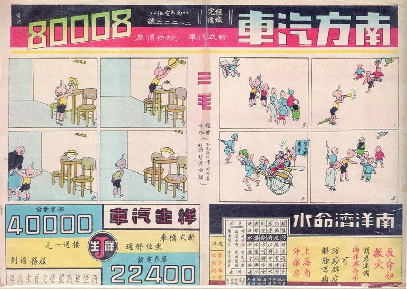 目前能找到的最早的三毛漫畫,刊登在1935年7月28日的《晨報》副刊《圖畫晨報》上。