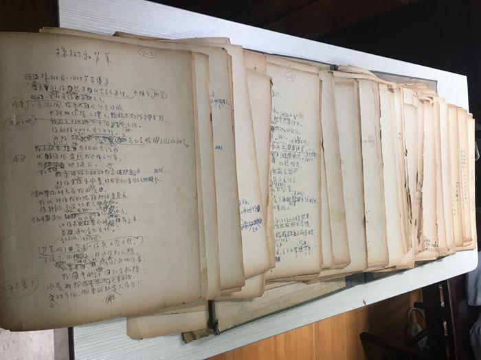 這些手稿雖然紙張泛黃,但字跡清晰可見,一切都還完好。孫建江看到,手稿中,筆跡的顏色數(shù)種并存,有的頁面干凈,有的頁面則畫滿了修改標記。