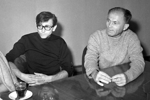 這張圖片里兩位人物坐在一張桌子面前,感覺是即將開始或者已經(jīng)結(jié)束了一次工作會晤,他們正在聆聽畫面外誰在滔滔不絕。右邊那位先生,我太熟悉了,那是你們捷克的頂級作家赫拉巴爾。你看他兩只手里轉(zhuǎn)動的一根香煙,再注意他已經(jīng)松弛的嘴唇,他已經(jīng)有些急于表達(dá)了,他隨時就要口若懸河地開侃了。您知道,話語權(quán)一旦落到赫拉巴爾這里,如果再來上幾大扎啤酒,時間就會停下,你們都會笑得眼淚汪汪。從這張照片老赫的面目和禿頂剩余頭發(fā)的成色看,不難判斷拍攝于二十世紀(jì)七十年代初期。不過,老赫的長相屬于那類過早成熟的類型,請恕我冒昧直言,他的形象就是三十來歲和六十來歲差別不怎么大,如同一枚核桃,剝開皮子,無論存放多久,它還是那枚核桃。憑我的經(jīng)驗,一個成熟男人長相過于稚嫩奶味,過于漂亮,或者說過于帥氣,一般不大容易交往到可靠的朋友,甚至包括溫文爾雅的異性朋友,俗話說,沒人緣兒。至于我,年輕的時候姑且算是“帥哥”,這就必然拉低了我的智力,阻礙了我的思維靈動。不過還好,我在一個小說里真實地描繪了自己,我是駝背加羅圈腿,正面看,我是一個字母“O”,側(cè)身看,我是一個阿拉伯?dāng)?shù)字“3”,這兩點特征之于我?guī)缀跞缤玫搅松系鄣木融H,它們給予我自信和勇氣,并且因此感受過幾位摯友的友誼和不同年齡女性的青睞。這就是善之為善則不善,瑕疵往往奠定了真實,這一點非常重要,赫拉巴爾曾經(jīng)引用歌德,就連太陽也難免帶著斑點。尤其是面對小孩子,無論我的個子有多高,迎面走去,我在他們眼里總是彎彎曲曲植物打蔫兒的一副模樣,又好像一只水母,小孩子的視角容易接納我這樣的大人,高大與堅定永遠(yuǎn)都不會在我的身上附體。