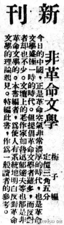 1929年1月19日,《申報》第5版刊登了由上海光明書局發(fā)行的幾本新書的廣告,其中第一本是《非革命文學(xué)》:
