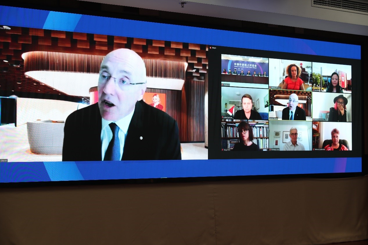 葛班尼在致辭中介紹了中澳兩國文學(xué)交流的情況。自2011年起,中國作家協(xié)會和西悉尼大學(xué)共同舉辦了五屆中澳文學(xué)論壇,形成了隔年互辦論壇的機(jī)制,兩國作家面對面研討對話的形式加深了對彼此文學(xué)世界的理解,也為兩國讀者創(chuàng)造了認(rèn)識對方國家文化的機(jī)會。隨著文學(xué)交流活動越來越豐富,兩國作家間的友好關(guān)系也在不斷增強(qiáng)。他表示,文學(xué)創(chuàng)作是整體文化的重要組成部分,建立切實(shí)有效的交流平臺,加強(qiáng)交流對話的深度,對于兩國文學(xué)的發(fā)展具有重要意義。他對中國作協(xié)在新冠疫情肆虐全球的當(dāng)下,促成本次以“疫情·思考·創(chuàng)作”為主題的線上對話活動表示感謝。