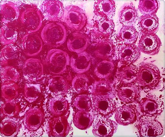 毫無疑問,賀賀的抽象畫,是她與自己的一種心靈對話。這就像女人喜歡照鏡子,賀賀的抽象畫,實(shí)際上也是一種自我鏡像,其中所映照出來的,正是她內(nèi)心的傷感、惆悵,以及反抗與掙扎。我由此看到一位畫家跌宕的內(nèi)心,實(shí)際上跟所有女性一樣,都隱藏著千千心結(jié)與多愁善感。