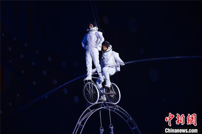 《新年奇幻夜》中,充滿強(qiáng)烈的科技感、時尚感,以及運(yùn)用豐富多元現(xiàn)代舞臺效果的馬戲節(jié)目,為觀眾呈現(xiàn)耳目一新的視覺體驗。其中來自匈牙利的《太空漫步》是國際馬戲節(jié)金獎節(jié)目,含金量十足。在近20米的高空,“宇航員”通過超高難度的表演,展現(xiàn)絕美的技藝,創(chuàng)造出身體平衡的極限之美。