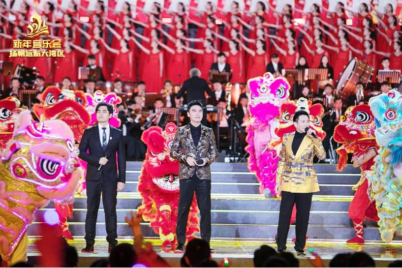 《2021新年音樂會——揚帆遠(yuǎn)航大灣區(qū)》也是驚喜不斷。交響與合唱《我的祖國》在浩蕩氣勢中拉開本次音樂會的演出序幕,十多位港澳臺藝人與內(nèi)地藝人一起演出,鐘鎮(zhèn)濤、夏利奧、楊宗緯、張也攜手共高歌,傳達(dá)炙熱愛國情。張智霖的《同舟之情》、合唱《蓮成一家》表達(dá)港澳回歸后,港澳同胞與祖國同舟共濟(jì)的真情;周筆暢、容祖兒與夏利奧合唱《共同家園》,惠英紅、杜德偉、鄭希怡與劉愷威帶來《堅信愛會贏》,陳小春與尹正帶來《友情歲月》,傳達(dá)同根同源的血脈之情;伍燕、李治廷與黃俊英帶來粵語說唱《講古》,融入多種嶺南文化元素。融合混搭、創(chuàng)意交響、無人機打造的懸浮天幕等多種藝術(shù)形式交融打造聽覺與視覺盛宴,眾多嘉賓匯聚,精彩紛呈,值得期待。