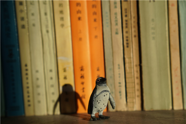 午后陽光照射到室內(nèi)滿是舊書的書架上