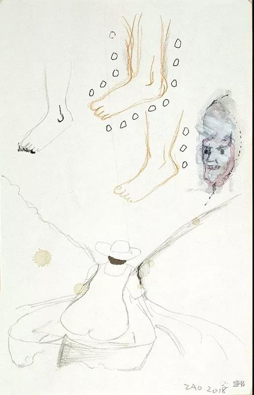 時隔多少年積攢而成的手稿與藝術(shù)家嚴肅的架上創(chuàng)作呈現(xiàn)出迥然不同的面貌,就像是藝術(shù)機體的另一種橫截面,與嚴肅創(chuàng)作和藝術(shù)展覽構(gòu)成了互文關(guān)系,從而豐富了整體。這次實踐無疑向著鼴書“接近藝術(shù)家書核心”的期待邁進了扎實的一步。