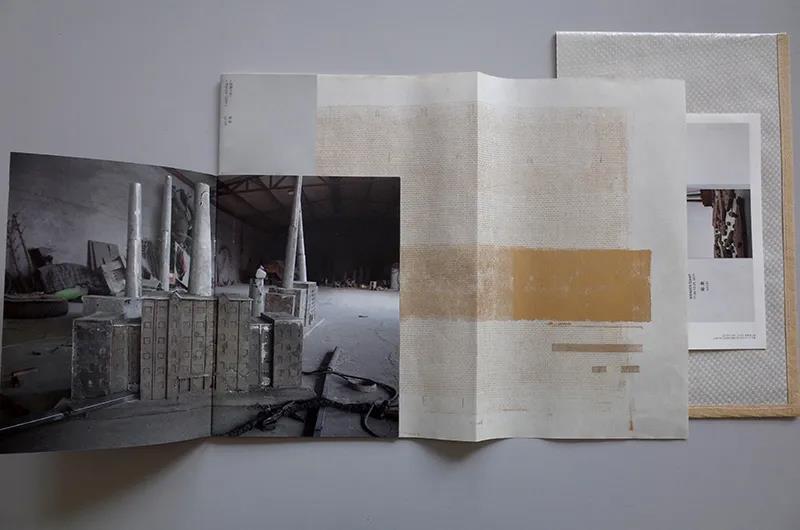 陸壘一直回避使用文字對他的創(chuàng)作加以描述,所以整本書只有一句話:我想寫“小說”,寫我的記憶和感知,以及一切荒唐的念頭。鼴書在這本冊子的制作中延續(xù)了對圖像敘事以及視覺語言的關(guān)注, 冊子由圖像集成,分為三個部分:主冊,是“小說”的主干,串聯(lián)起諸多意象的內(nèi)在的陳述,可以視其為“骨”;兩本輔冊,分別聚焦于作品存在的兩個物理場景:工廠與展廳,展廳無疑是呈現(xiàn)作品最肯定的面貌,但工廠則體現(xiàn)一個過程,存在大量更生動的表情。