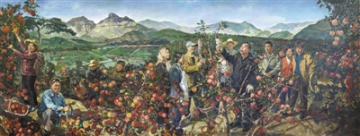 在決戰(zhàn)脫貧攻堅的道路上,涌現出許多先進典型。他們把身影留在田間地頭,把真情獻給人民群眾,不僅溫暖了一方百姓,也感動了很多美術工作者。一批謳歌扶貧工作者的美術作品相繼誕生,展現出當代主題性美術創(chuàng)作在觀念和方法上的新思考與新探索。比如,王珂創(chuàng)作的中國畫《人民的好縣長——高德榮》,其畫面與以往表現英模的視覺樣式不同,創(chuàng)作者有意避免將主人公置于村民簇擁之中,而是著重描繪主人公的樸實與奉獻,意在向觀眾揭示高德榮的可敬之處在于扎根西南邊陲數十年的平凡堅守。郭健濂、褚朱炯、井士劍合作的油畫《太行山上的新愚公——李保國》,描繪了一位“農民”向大家傳授剪枝技術的場景,這位“農民”正是河北農業(yè)大學原教授李保國。創(chuàng)作者們希望通過這一畫面,傳遞李保國“把我變成農民,把農民變成我”的精神信念??梢钥吹剑敶黝}性美術創(chuàng)作不再過于強調典型化的手法,而是以更加平易近人的姿態(tài),構建雙重視野下創(chuàng)作者與觀者的對話現場。美術工作者嘗試以質樸的語言、平視的視角拉近英模人物與人民群眾之間的距離,使扶貧脫貧事跡更易引發(fā)共鳴和共情。