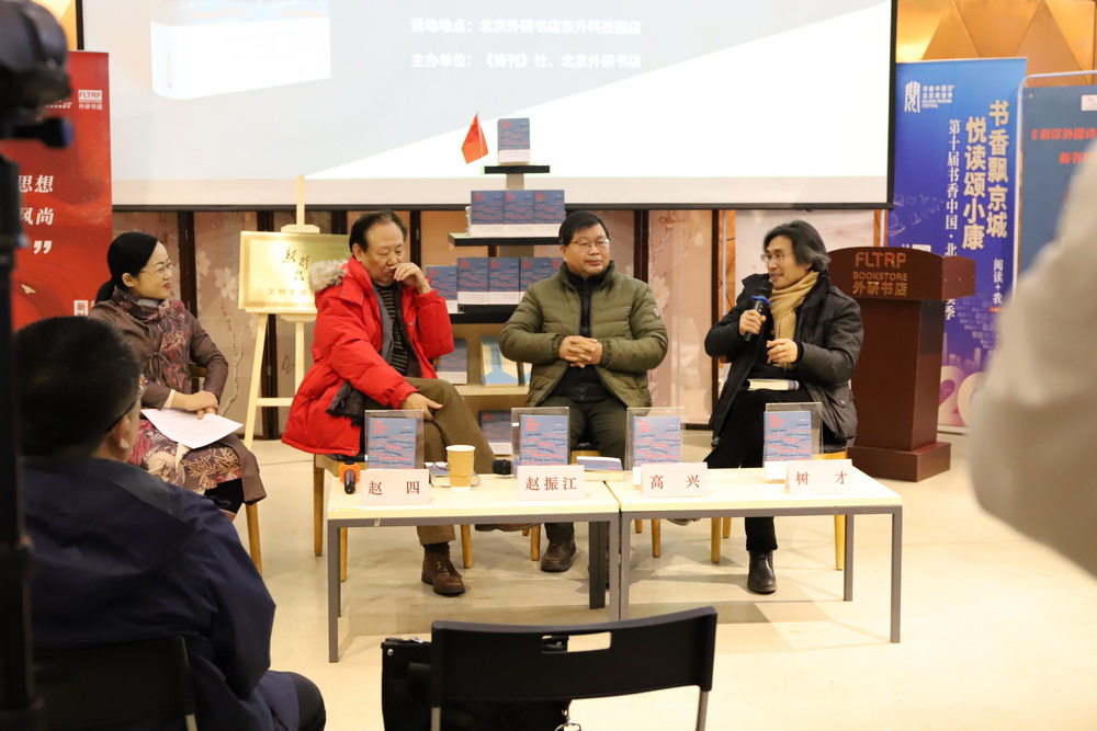 近日,由《詩刊》社與廣西師范大學(xué)出版社聯(lián)合推出的《新譯外國詩人20家》問世,并于1月6日在北京外研書店東升科技園店舉辦了首發(fā)儀式?!对娍分骶幚钌倬鱿⒅罗o,與《詩刊》副編審趙四、翻譯家趙振江、翻譯家高興、翻譯家樹才以及北京外研書店總經(jīng)理付帥共同為《新譯外國詩人20家》新書揭幕。