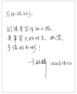 篇幅所限,不勝贅言,筆者不再將學(xué) 生在信中所表達(dá)的感悟一一羅列。筆者堅信,優(yōu)秀的科普作品一定能點燃青少年的科學(xué)夢想,激發(fā)全民族實現(xiàn)中國夢的想象力創(chuàng)造力。不僅如此,實踐證明,這些科普佳作還能在潛移默化中對學(xué)生寫作形成良好的文風(fēng)起到引領(lǐng)示范作用。對我們教育工作者來說,當(dāng)務(wù)之急,是要以更為積極的姿態(tài),遴選優(yōu)秀的科普科幻作品,整合資源,開發(fā)課程,帶著學(xué)生讀書、讀書、再讀書,從閱讀起步,培養(yǎng)他們的好奇心、科學(xué)的想象力與創(chuàng)造力。