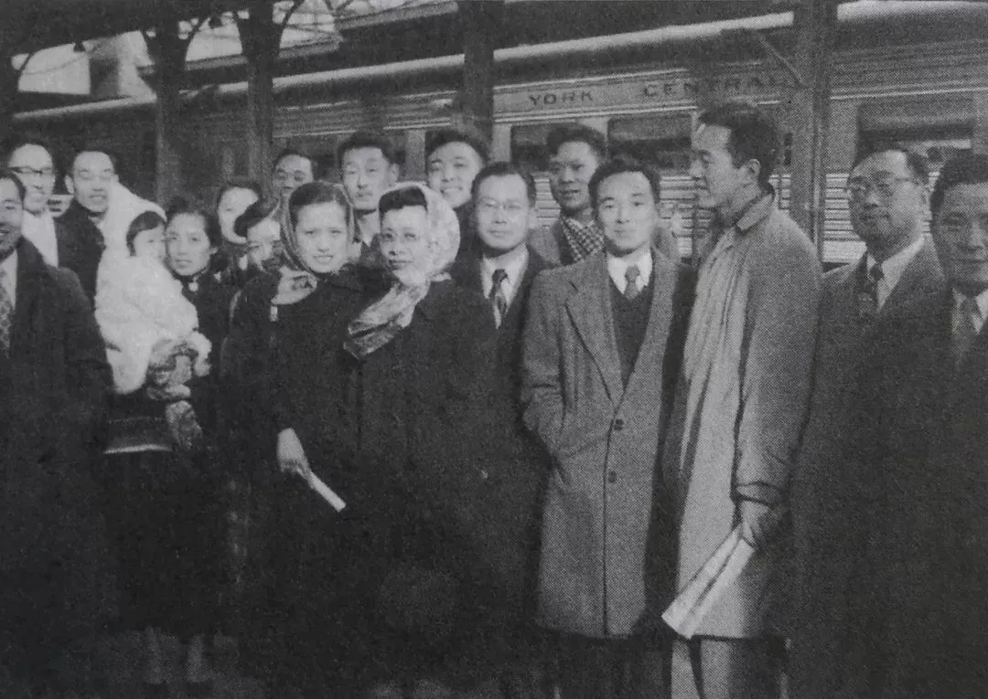 穆旦夫婦回國前在火車站與送行的同學(xué)朋友合影