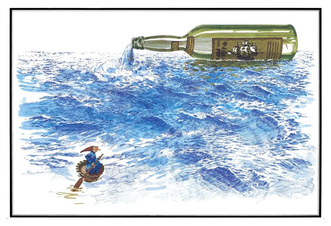 安野光雅曾說:“我小時候,在腦海里想象‘世界是圓的’這個概念——整個世界就像一個里外翻過來的橡皮球,里面住著各個洲的人。當(dāng)然,這只是一個小男孩異想天開,但這樣的想象,也是一種觀察世界的角度,是我所有作品的源泉?!?/p>