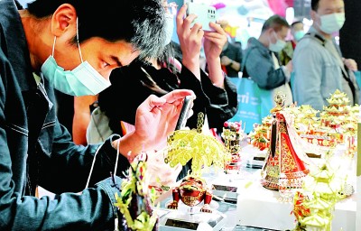 參觀者在第十九屆中國國際玩具及教育設備展覽會上拍攝短視頻。新華社記者 方喆攝