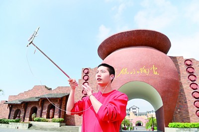 游客在重慶安陶小鎮(zhèn)通過手機“云直播”。新華社記者 唐奕攝