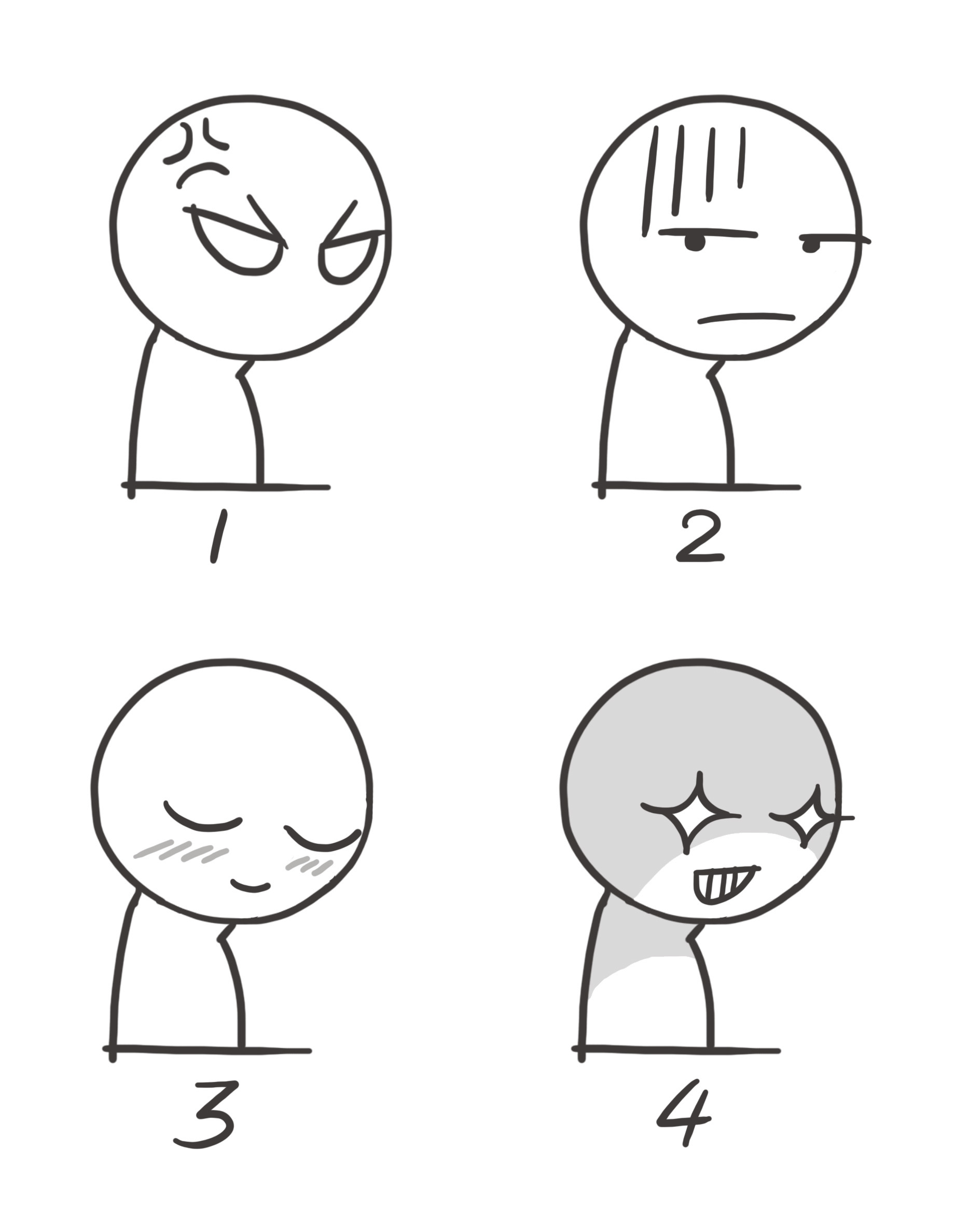 當(dāng)動(dòng)畫和漫畫作品嘗試塑造角色的面部表情或?qū)巧榫w進(jìn)行視覺化的過程中,我們經(jīng)常可以見到如圖1所示的內(nèi)容,在這里稱之為“表情元素”——當(dāng)角色憤怒生氣時(shí),他額頭上長出三四根向內(nèi)彎曲的弧線,看上去如同青筋暴起;當(dāng)角色尷尬沮喪時(shí),他眼眶上方出現(xiàn)幾條豎線,似乎冷汗直冒;當(dāng)角色害羞臉紅時(shí),他臉上會(huì)出現(xiàn)幾條斜線;當(dāng)角色陰沉著臉或者密謀詭計(jì)時(shí),其面部會(huì)出現(xiàn)“自下而上地打光”的效果,額頭上部產(chǎn)生一塊陰影,可能露出或不露出眼睛……