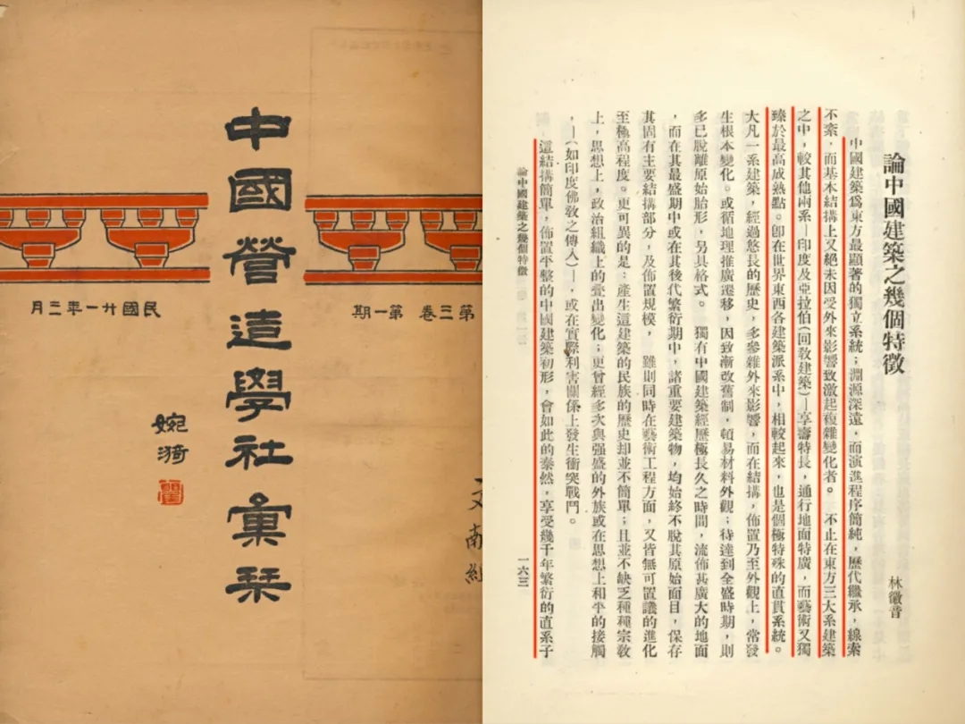 1932年林徽因在《中國(guó)營(yíng)造學(xué)社匯刊》第三卷第一期發(fā)表《論中國(guó)建筑之幾個(gè)特征》