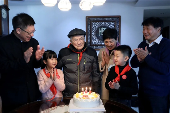 按照“虛歲”說法,2月16日是圣野先生的百歲生日。春節(jié)前夕,上海市文聯(lián)、上海民協(xié)相關領導來到了圣野先生家里,為他舉辦了一個特別又暖心的生日會。
