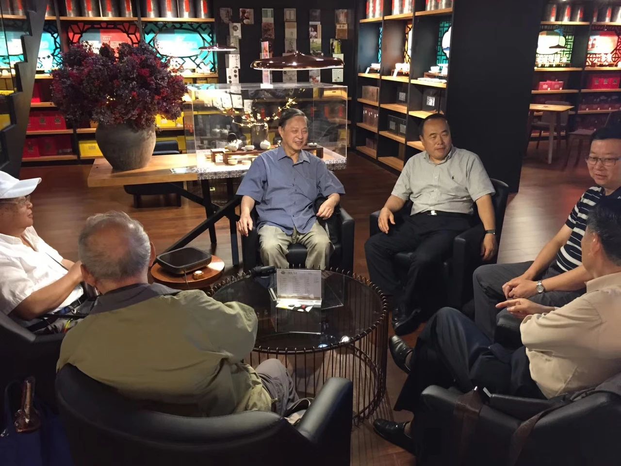 董仁威(左一)與王曉達(中)、吳顯奎(右三)在2017年《追夢人——四川科幻口述史》新書發(fā)布會上,姚海軍供圖
