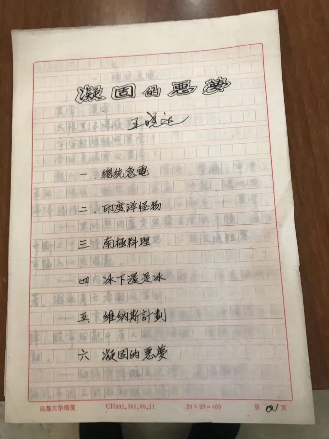 《凝固的噩夢》原稿即《冰下的夢》(發(fā)表名)手稿,科幻博物館供圖