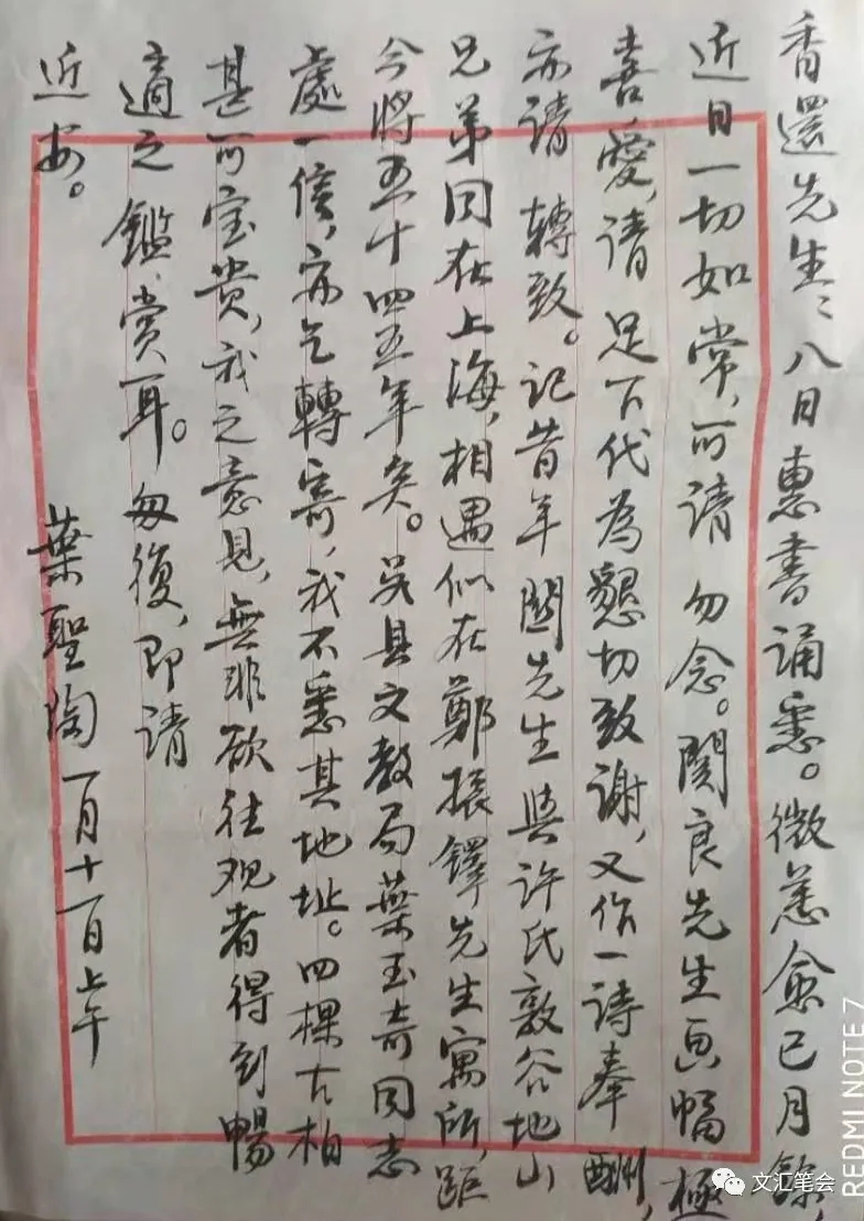 香還同志:上月卅日手書(shū)今日到,誦悉一切。