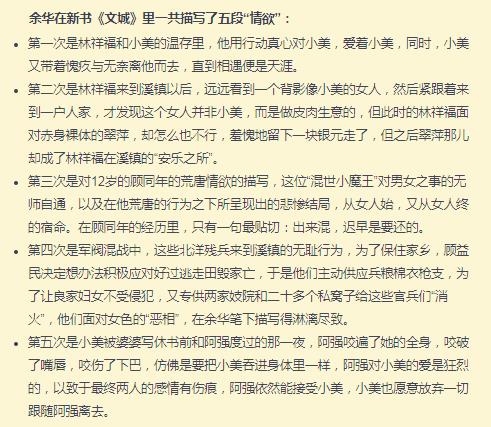 網(wǎng)易號(hào)“六秒”對(duì)《文城》細(xì)讀后,將小說中五次情欲描寫逐一列舉出來。