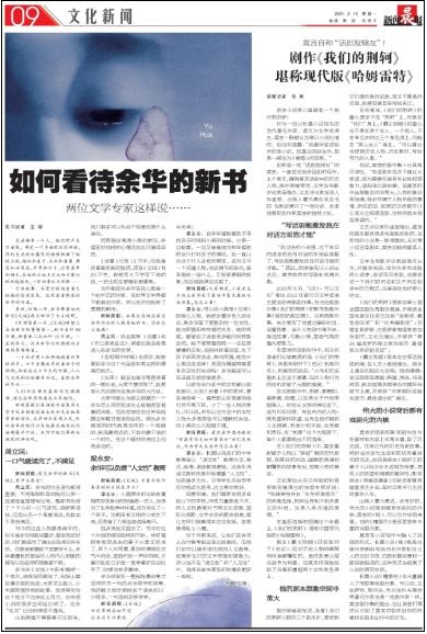 3月1日,錢江晚報(bào)新媒體小時(shí)新聞發(fā)布一組筆談《多維的解讀:余華長(zhǎng)篇新作<文城>》,杭州師大文藝批評(píng)研究院洪治綱、郭洪雷、王侃、邵寧寧、詹玲、劉楊等幾位老師在筆談中對(duì)《文城》進(jìn)行了討論。