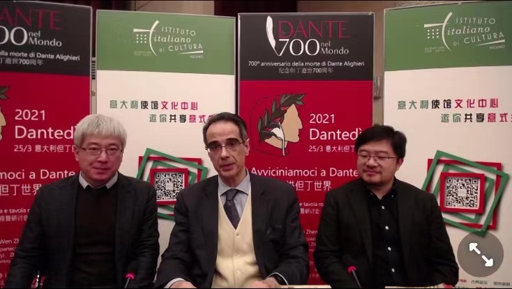 3月25日,意大利駐華使館文化中心和北京外國語大學(xué)意大利研究中心合辦的“走進但丁世界”講座暨研討會在線上舉行。意大利駐華使館文化參贊孟斐璇(Franco Amadei)、北京外國語大學(xué)教授文錚、北京大學(xué)意大利學(xué)專家成沫、浙江大學(xué)副教授朱振宇等參加紀(jì)念活動。