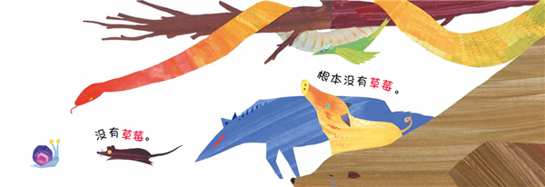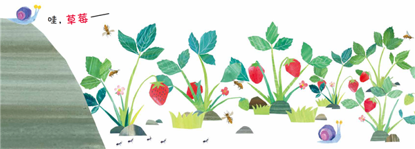 《好想好想吃草莓》講述了一只有勇氣、有毅力的小蝸牛想吃草莓的故事。一只小蝸牛出發(fā)尋找草莓,一路上,它遇見(jiàn)一只又一只動(dòng)物,它們都勸小蝸牛不用去了,因?yàn)樗鼈儧](méi)有找到草莓。經(jīng)過(guò)一番考慮,小蝸牛還是決定繼續(xù)尋找草莓。不分白天和夜晚,不管晴天還是雨天,它仍然堅(jiān)持趕路。終于,小蝸牛越過(guò)山丘,看到了一大片又大又紅的草莓。