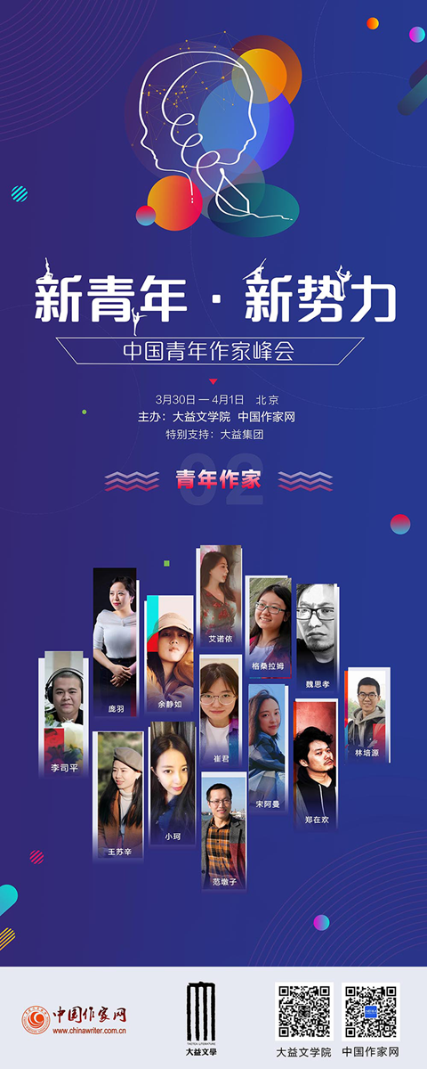 3月30日至4月1日,大益文學(xué)院與中國作家網(wǎng)聯(lián)合主辦“新青年?新勢力”中國青年作家峰會,13位青年作家與8位文學(xué)導(dǎo)師,聚焦我們這個時代青年寫作的歸途與來路,航標與遠方。