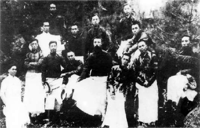 李大釗(前排左五)與《晨鐘報》編輯部同事在北京中央公園(今中山公園)合影。