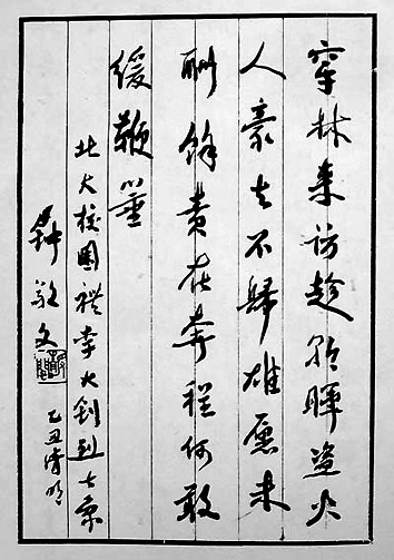 1941年,鐘敬文受邀到遷往粵北的中山大學(xué)中文系任教。此時(shí)的鐘敬文在經(jīng)歷了幾年的生活與工作實(shí)踐磨礪之后,對(duì)馬克思主義理論與中國社會(huì)有了更深刻的認(rèn)識(shí),他的精神發(fā)生了重大變化。鐘敬文不再是一個(gè)純粹的民間文化研究者,他的作品充滿了新情思、新境界,將自己的生命、情感與當(dāng)時(shí)的民族命運(yùn)與人民的哀樂緊密相連。1942年,他寫下了《歷史的公正》一文,“那些真正有才識(shí)、有膽量的思想家、藝術(shù)家,只知道公布他們的真知灼見。他們沒有理會(huì)(至少不重視)那將要到來或者已經(jīng)到來的迫害,——那些從因襲社會(huì)發(fā)出的,從腐敗的統(tǒng)治者發(fā)出的任何殘酷的奇特的懲罰。他們決不計(jì)較著那些迫害,便緊閉了說真話的嘴巴。他們覺得不把自己所知道的真理說出來,就是委屈了自己的良心,就是對(duì)人類的一種重大犯罪”。正是基于這樣一種真理追求,鐘敬文與中山大學(xué)的一批進(jìn)步教授,利用講臺(tái)宣講進(jìn)步思想,在同學(xué)中頗有影響,因之被當(dāng)局列入了黑名單,受到監(jiān)視。一次還因躲避監(jiān)視,晚上回宿舍的路上掉進(jìn)壕溝,受了重傷。1947年,國民黨頒發(fā)了所謂“戡亂令”,鐘敬文與法學(xué)院的幾位教授被非法解聘。
