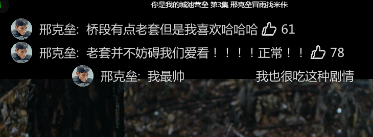 中國作家網(wǎng):彈幕會說到有一些情節(jié)比較老套、生硬,比如米佧訓練時為了送一位老人回村在山里迷路,邢克壘去救她,米佧剛被批評擅自出營又出了營地,就是情節(jié)刻意為了讓這對CP遇到。這個時候,彈幕也有鳴不平的觀點,說這是十年前的文,有些情節(jié)、套路老套也很正常,甜分到位就可以了,您怎么看?